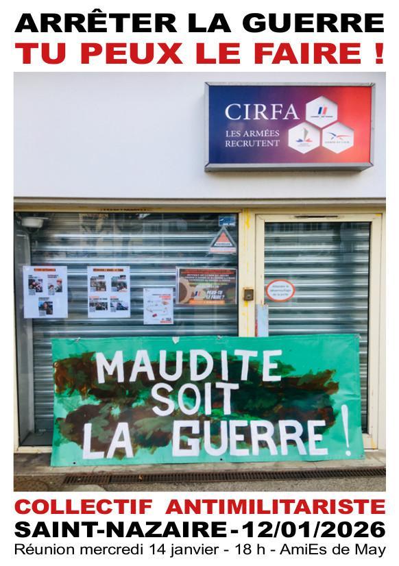 Mercredi 14 janvier à 18h – réunion de constitution d’un collectif anti-guerre (nom à définir).